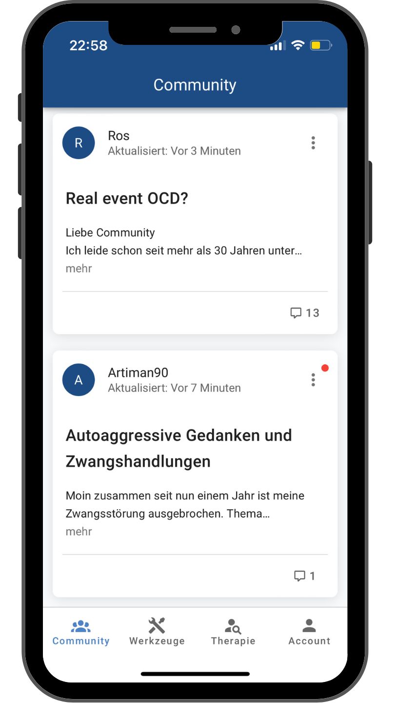 Unsere Community ist die Heimat für alle Betroffenen, die aktiv an ihrer Gesundung arbeiten, sich gegenseitig unterstützen und Mut zusprechen wollen. Hier triffst du auf hunderte andere Gleichgesinnte, die ganz genau nachvollziehen können, wie es dir mit deiner Zwangsstörung geht.